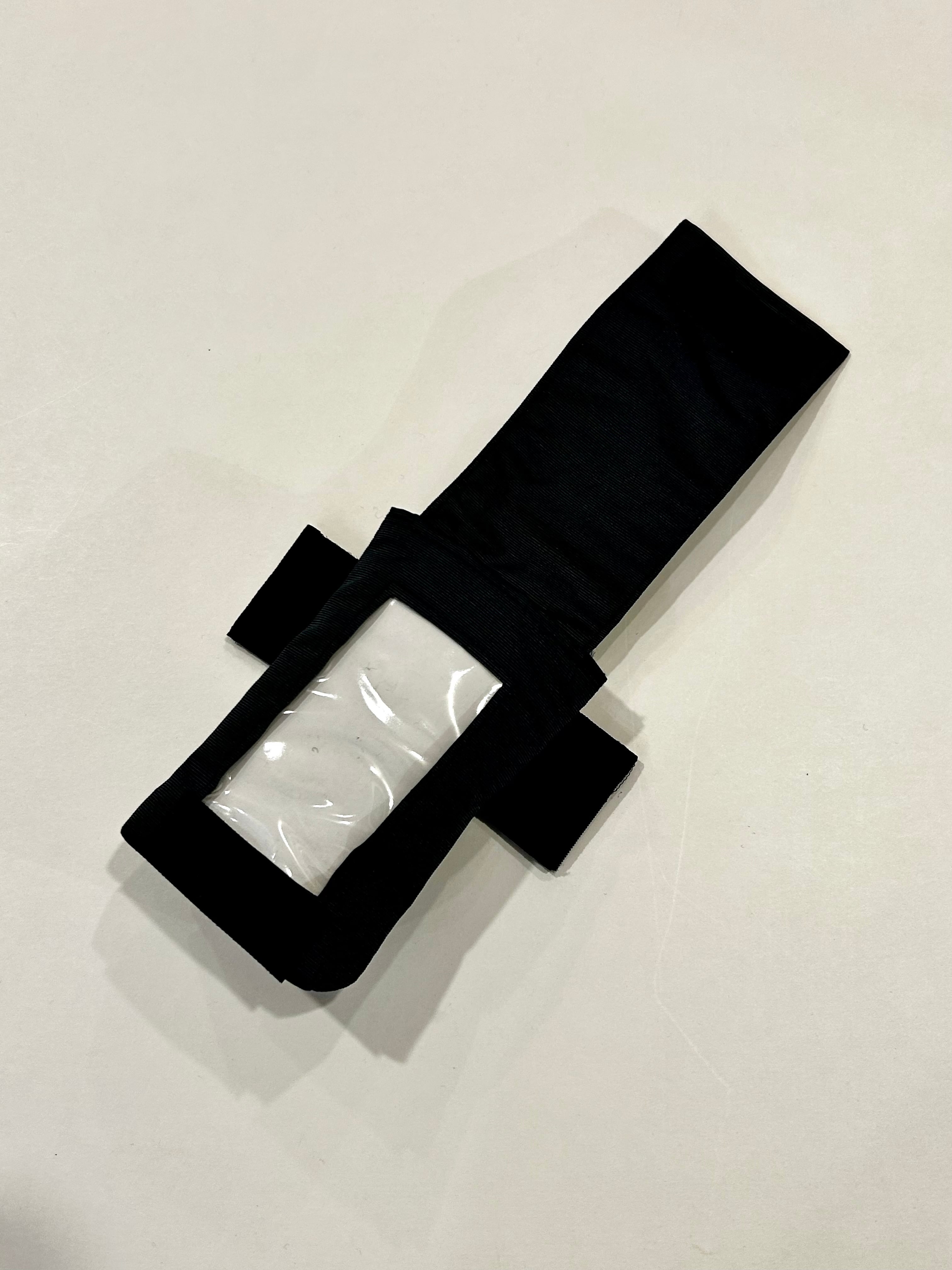 ブルーのトゥシューズの刺繍が可愛いケースになっています。ケースから取り出さずに操作も通話も可能です。