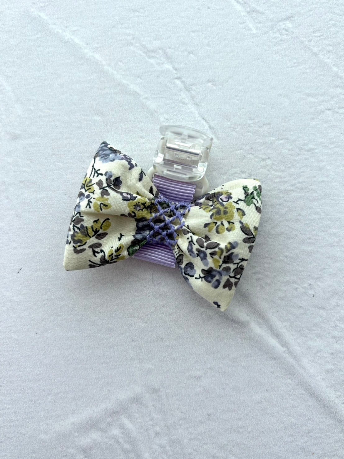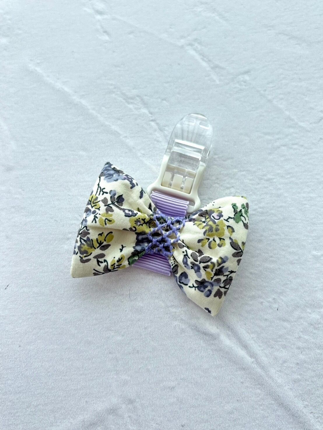 白地に紫とベージュの小花柄が可愛いリバティプリントを使用したクリップです。