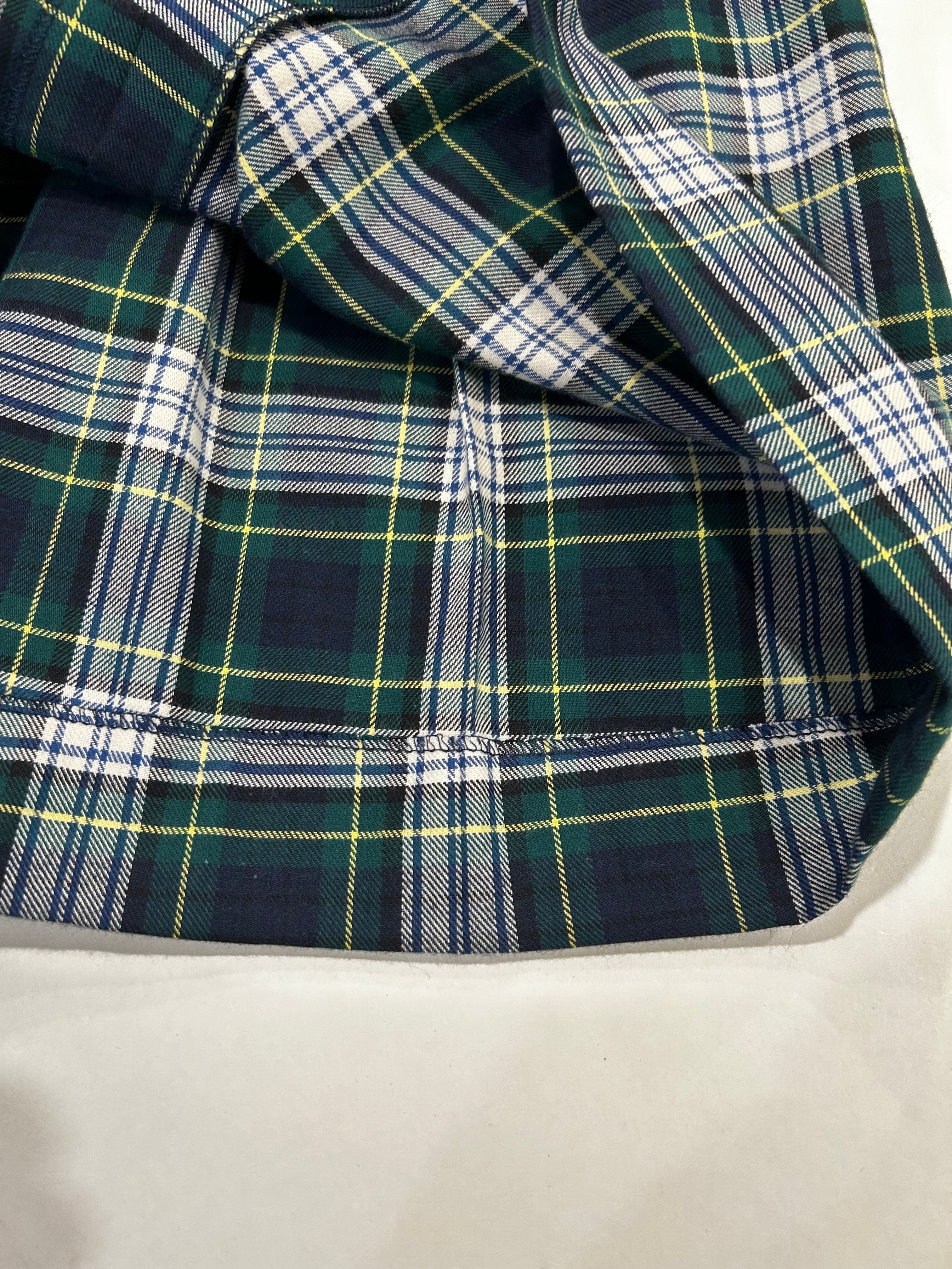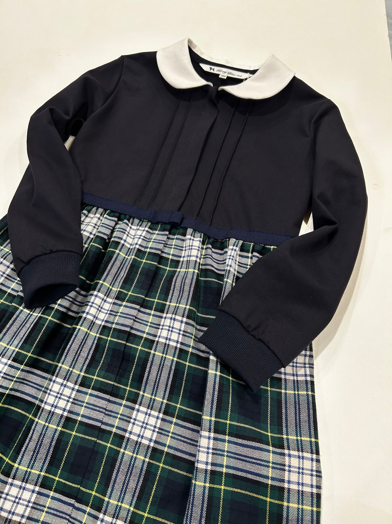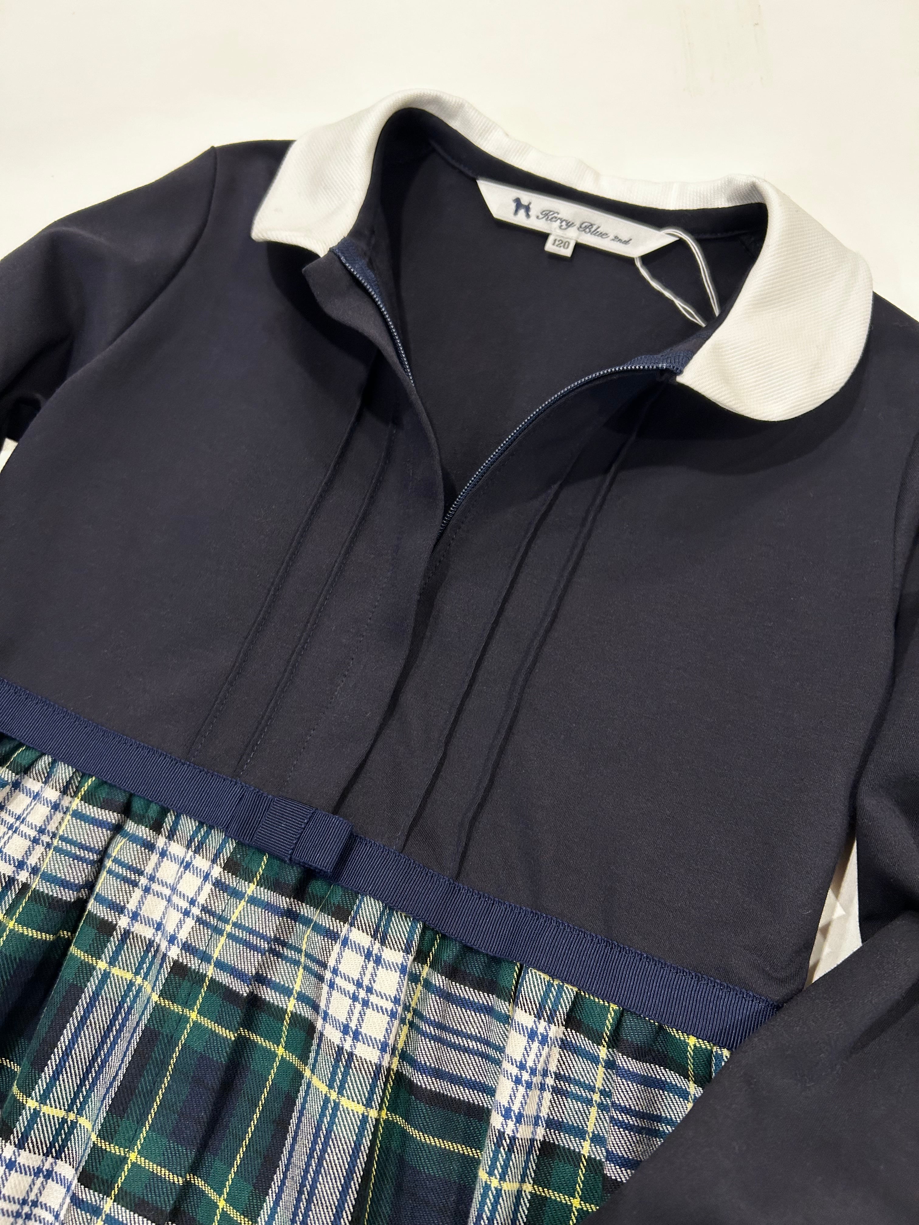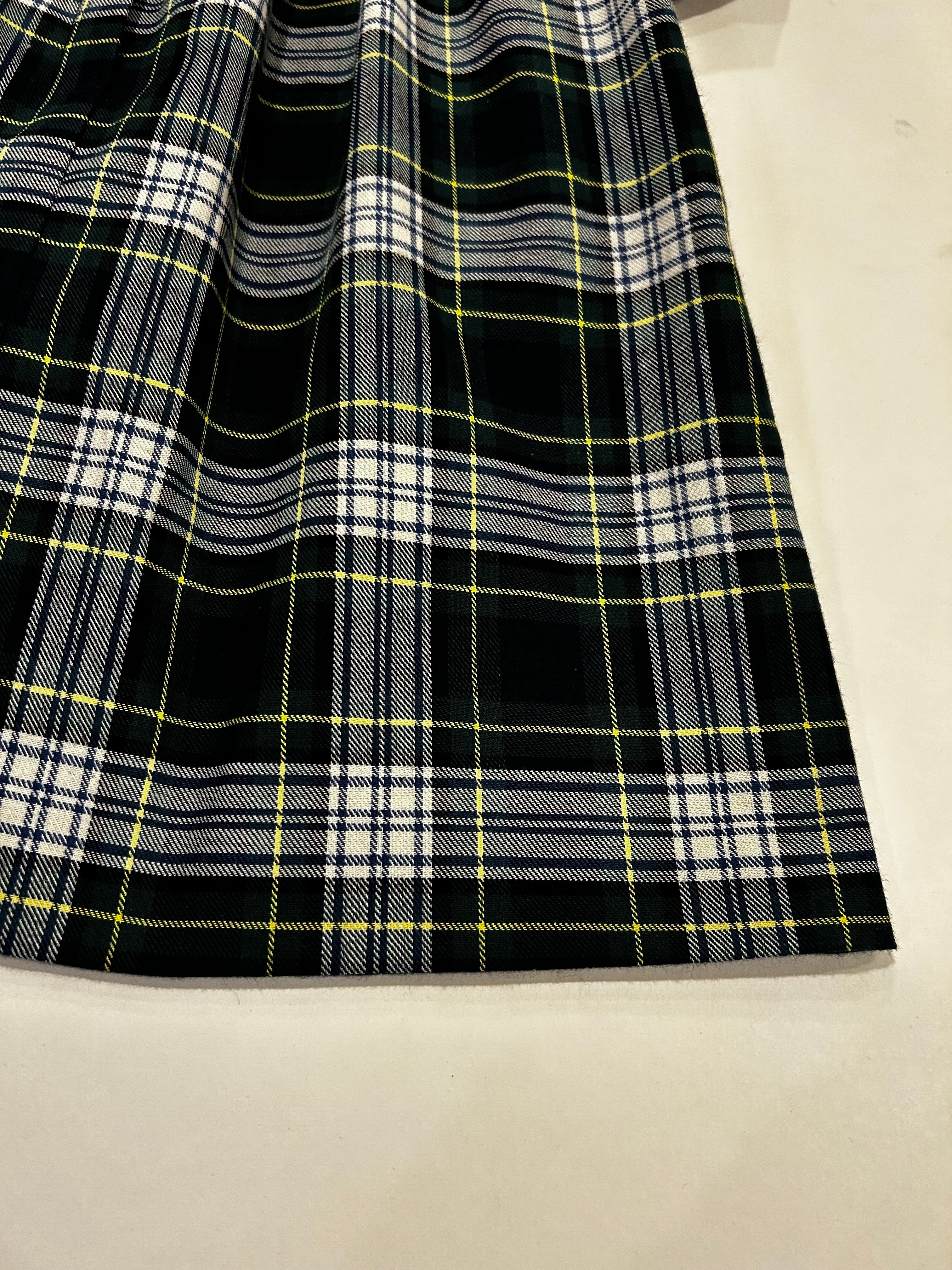 スカート部分はグリーン・紺・黄色と人気のマドラスチェックの生地を使用しています。真夏を除いた3シーズンお召し頂ける素材感です。
