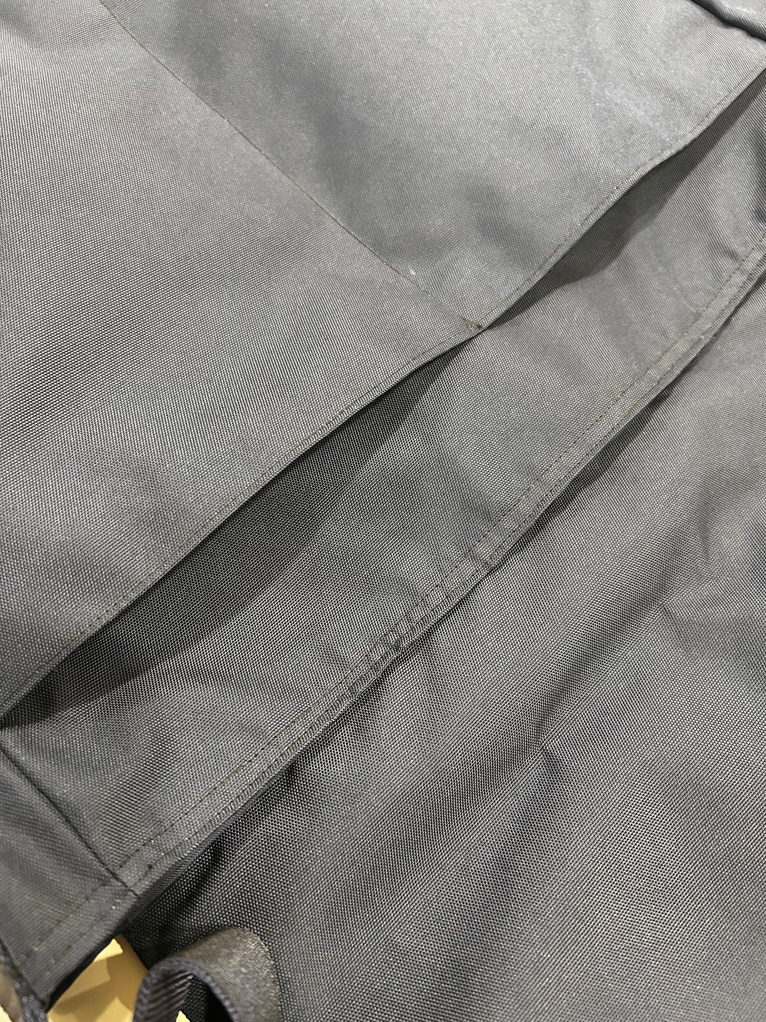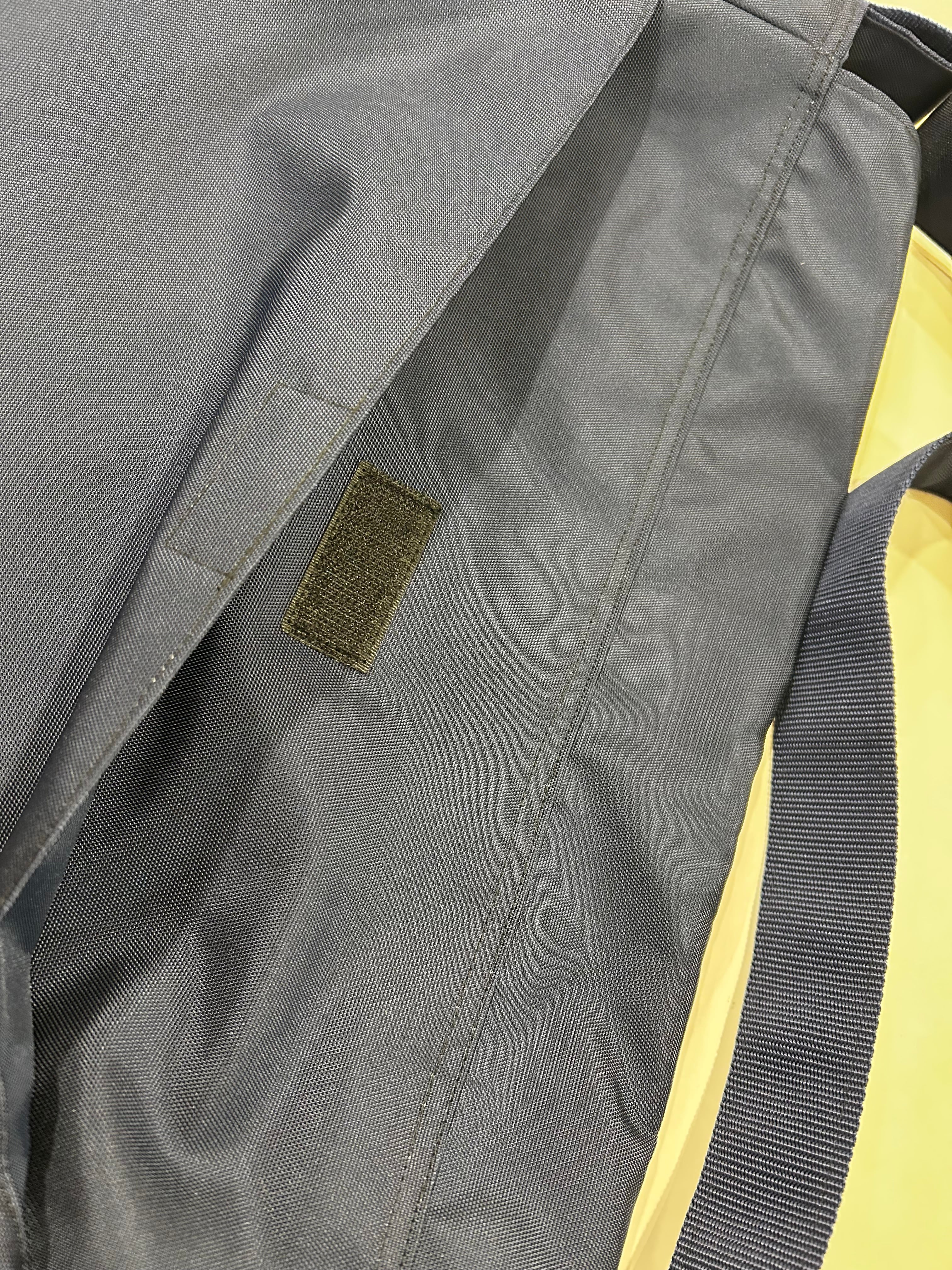 内側に3箇所、外側に1箇所ポケットが付いています。お名前シール(白色)もおつけしました。