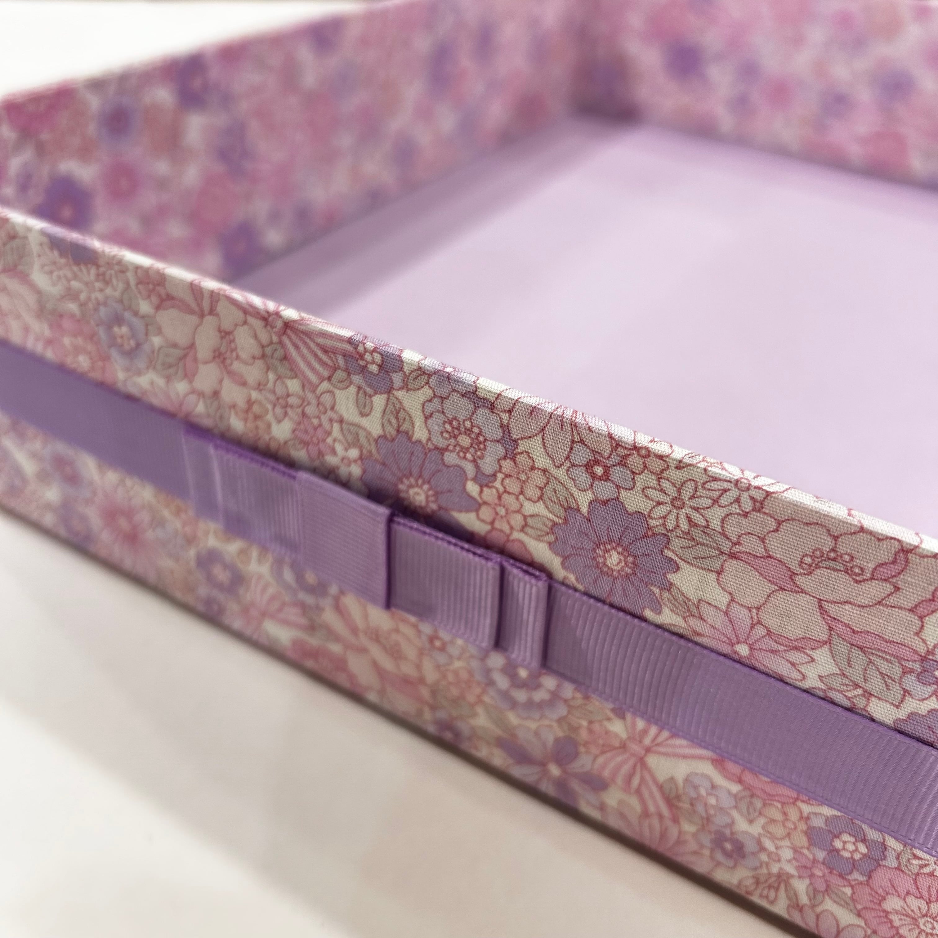 のりやはさみ・クーピーなどスッキリ収められるようにA4サイズでお作りしたお道具箱です。カルトナージュで仕上げいますので丈夫なお作りになっています。