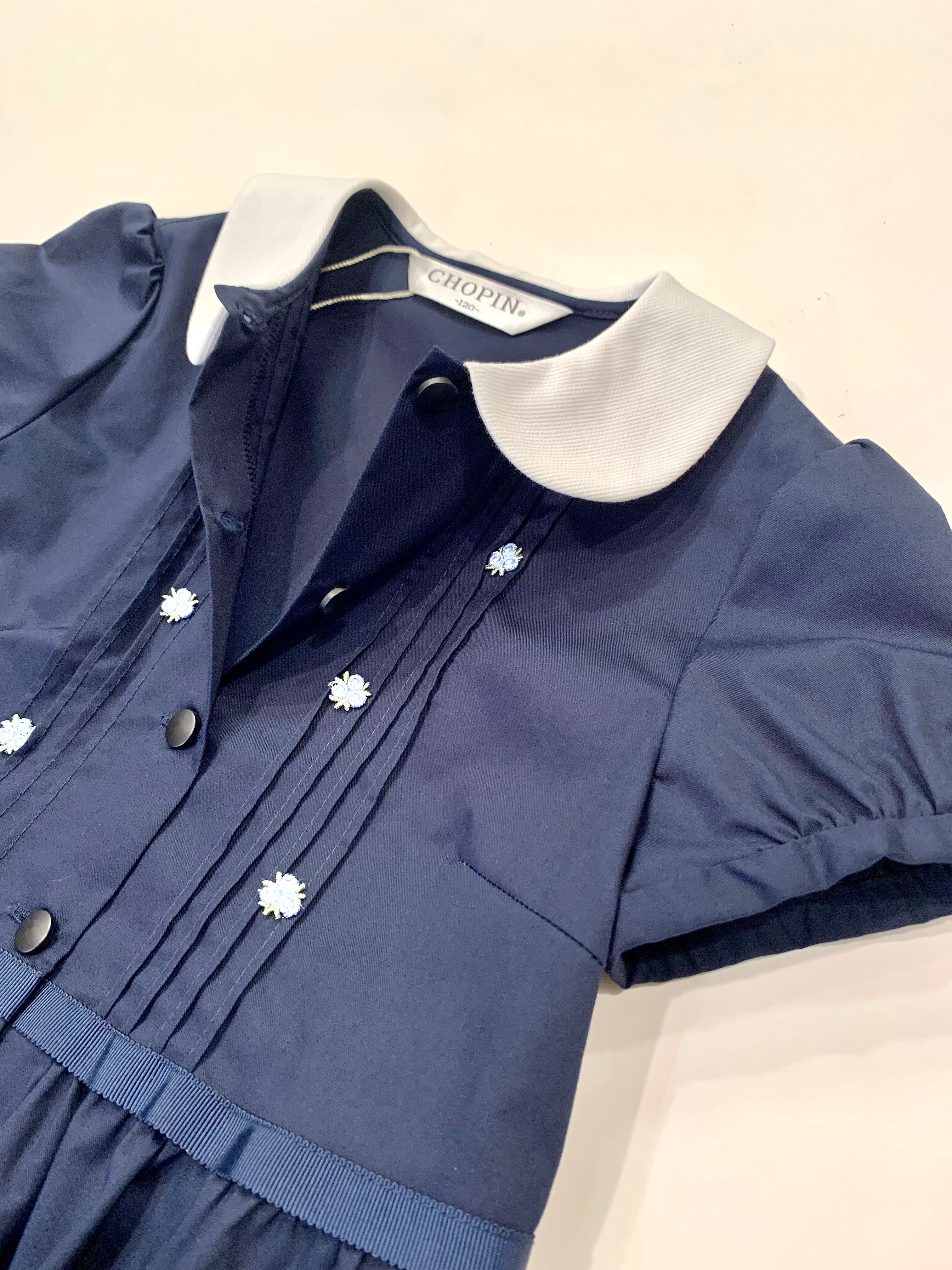 胸元のピンタックと刺繍がアクセントになった可愛いワンピースです。学校訪問や通塾用として、また夏のお出かけにお薦めのワンピースです。
