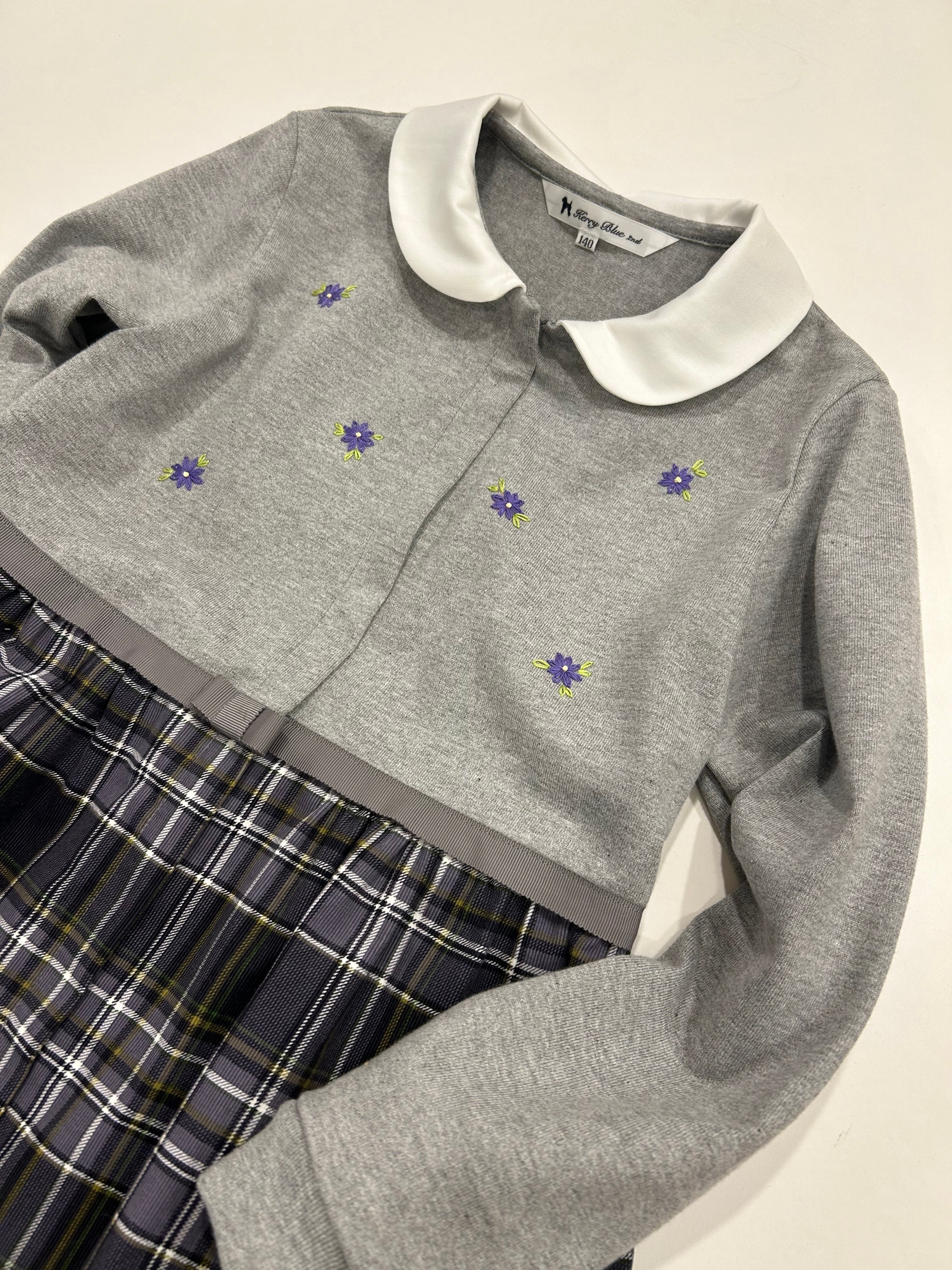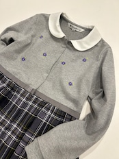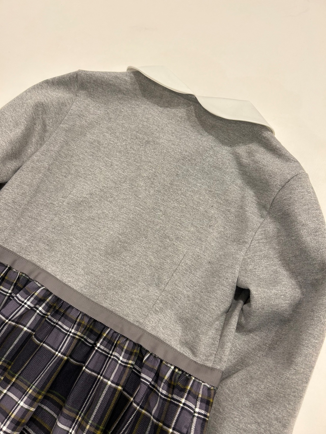 スカート部分はグレーの濃淡の細畝コーデュロイの生地を使用しています。肌触りも良く上品なチェック生地は秋・冬とお召し頂ける素材感です。